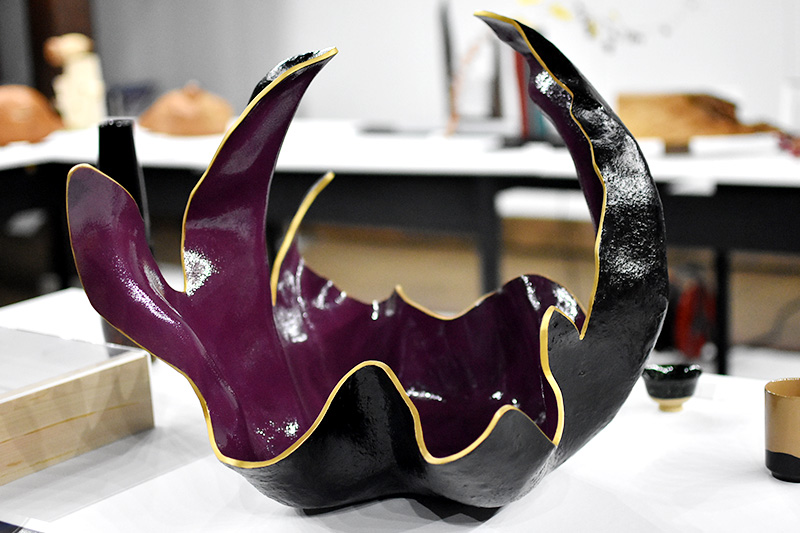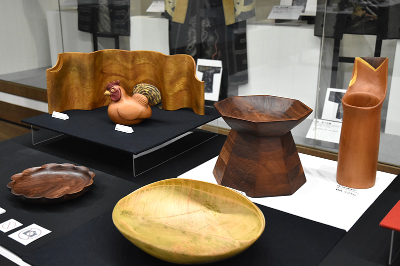 陶芸、木彫、石・木彫り、独楽、ステンドグラス、染織などさまざまなジャンルの作家が展示します。