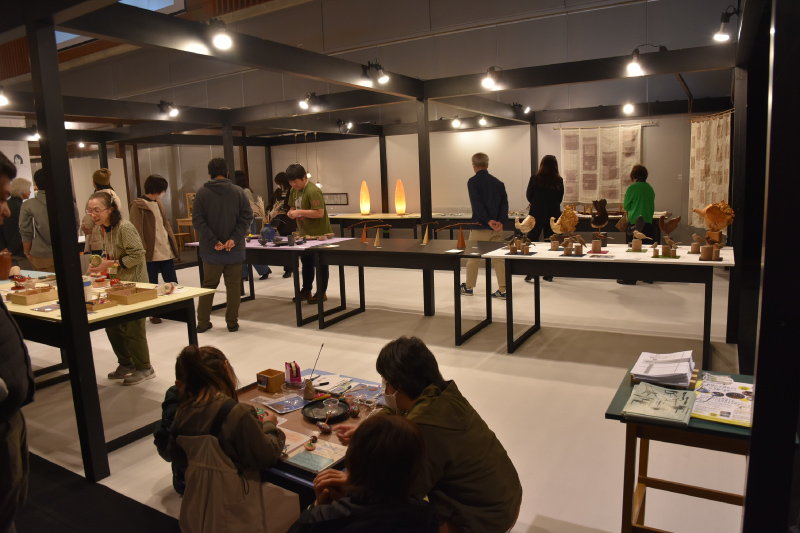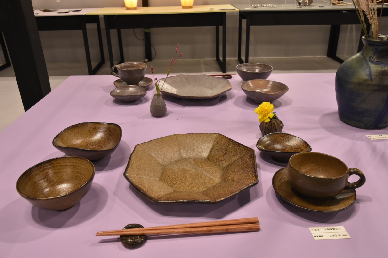 陶芸、木彫、石・木彫り、独楽、ステンドグラス、染織などさまざまなジャンルの作家が展示します。
